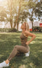 Jeg elsker at denne toppen kan brukes uten BH under. Den har middels støtte, perfekt for pilates og grunnleggende treningsøkter. Den sitter litt tettere enn de fleste topper, men jeg kan fortsatt bruke den i min normale størrelse. Et stort pluss for de justerbare stroppene!