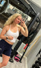 Myk topp som tørker super fort etter vask. Fin lengde å kombinere med high waist tights eller for et luftig Outfit på sommeren. Jeg digger den i kombinasjon med scrunch shortsen til Famme.