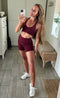 Helt nydelig blåfarge. Kjøpte xs, bruker 70G i vanlig bh. Med store bryst og smal midje passer den bedre til hverdags enn trening. Stoffet er ikke imponerende slitesterkt og får raskt skrammer. Men fortsatt nydelig og komfortabel å ha på.